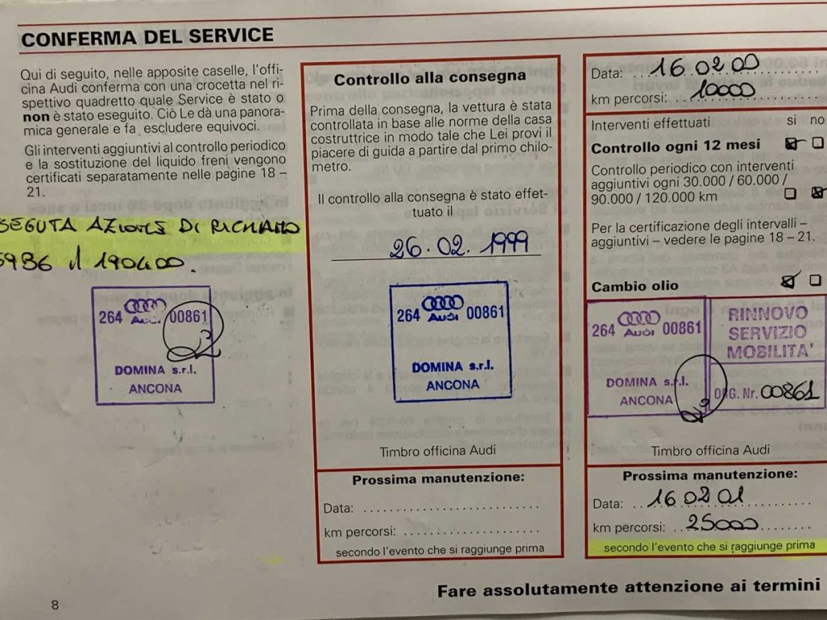 | Immatricolazione: | 26/02/1999 |