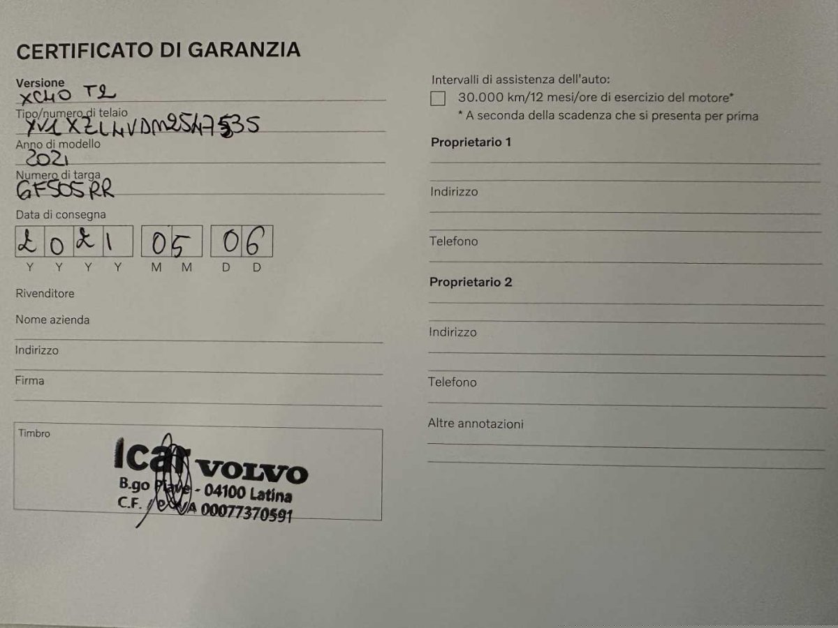 | Immatricolazione: | 06/05/2021 |
